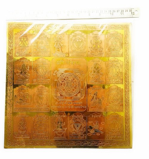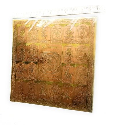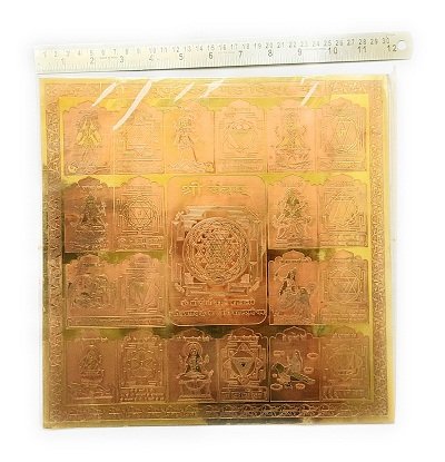 दस महाविद्या महा यंत्र यह 10 महाविद्याओं का महा यंत्र है जिसका उपयोग 10 महाविद्या साधना या 10 महाविद्याओं में किसी भी एक देवी की साधना और सिद्धि के लिए किया जाता है इस यंत्र में मां तारा मां काली मां कमला देवी मां मातंगी देवी मां बगलामुखी देवी मां धूमावती देवी मां त्रिपुर भैरवी देवी मां त्रिपुर सुंदरी मां छिन्नमस्ता मां भुवनेश्वरी और मध्य में मां कामाख्या देवी विराजित है इस यंत्र में माताओं के चित्र सहित यंत्र निर्मित है यह यंत्र तांबे और अष्ट धातु से निर्मित है तांबे का यंत्र और अष्ट धातु से प्रिंट किया गया है यह लगभग 12 बाई 12 इंच लंबा चौड़ा है