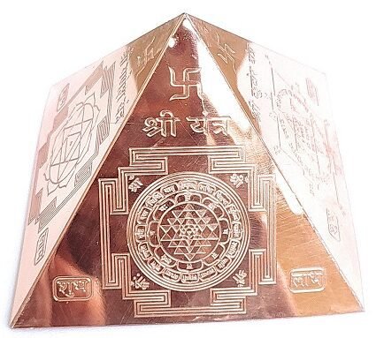 महालक्ष्मी पिरामिड यंत्र जिसमें श्री कुबेर यंत्र, श्री कनक धारा यंत्र, श्री गणेश यंत्र, श्रीयंत्र, चारों दिशाओं में अंकित है जो घर में सभी दोष दूर करते हैं व लक्ष्मी प्राप्ति के अवसर प्रदान करता है यह महालक्ष्मी जाप ऊर्जा को एकत्रित करता है इसकी लंबाई चौड़ाई 3 इंच की है व शुध्द तांबे से निर्मित है Mahalakshmi pyramid for All vastudosh Nivaran and Positive energy Generater by Mahalakshmi Jaap